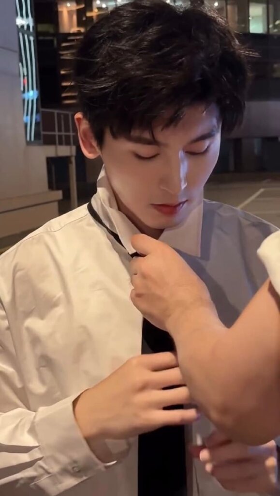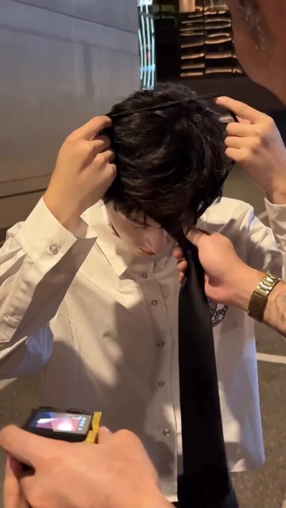 やっぱネクタイをしめてもらうシーンが目を引きますネ♪
