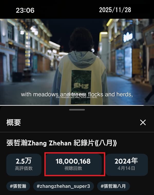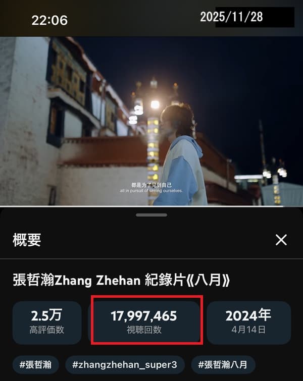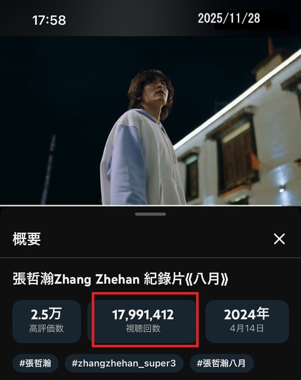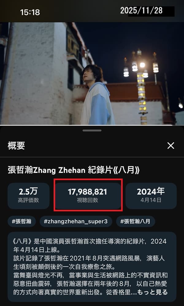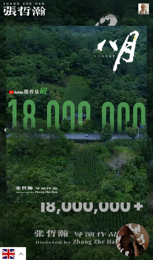 チャンジャーハン監督のドキュメンタリー映画「8月」1800万回再生達成!