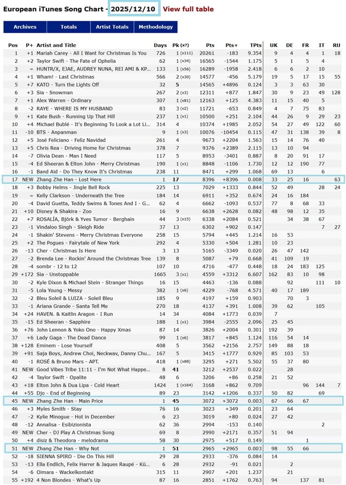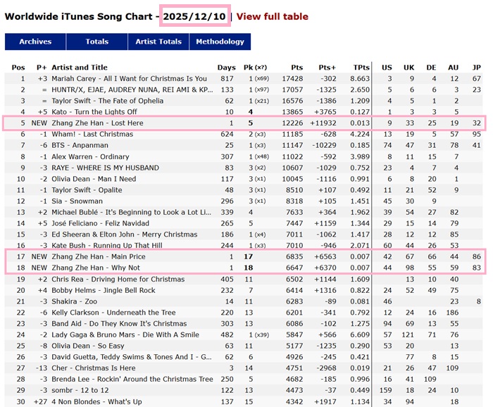 iTunesワールドチャート12/10付け「シングル」ランキング 内容詳細