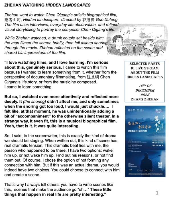 ジャーハンは、作曲家・陳其鋼(チェン・チーガン)の芸術的な伝記映画『隠者山河(Hidden Landscapes)』~郭旭鋒(グオ・シューフォン)監督作品を観に行きました。