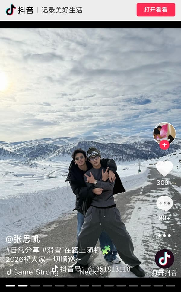 俳優「張思凡さんの公式ドゥイン」1/7投稿 チャンジャーハンとの2ショット公開
