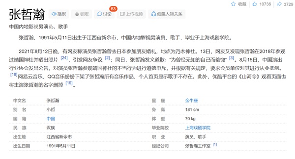 2021年8月12日夜、あるネットユーザーが、俳優・張哲瀚が日本で友人の結婚式に出席し、その場所が乃木神社であったと主張した。13日には、さらに別のネットユーザーが、張哲瀚が2018年に靖国神社を参拝し、その際の写真を公開していたことを発見し、これがネット上で論争を引き起こした。同日、張哲瀚は謝罪文を発表し、「かつての無知な自分を恥じている」と述べた。