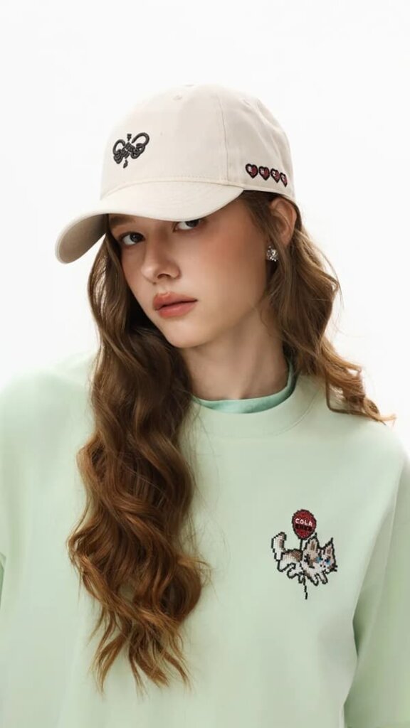 正面に中国結びロゴ刺繍、側面にハートロゴ刺繍入り。1色展開。