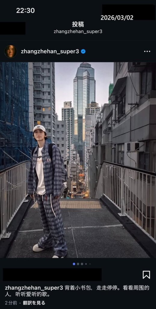 チャンジャーハン公式インスタ3/2投稿 「街を散策するチャンジャーハン写真公開」