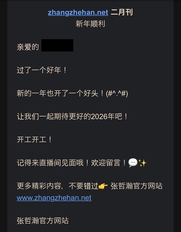 チャンジャーハン、月初のニュースレター発行「一緒により良い2026年を期待しましょう!」