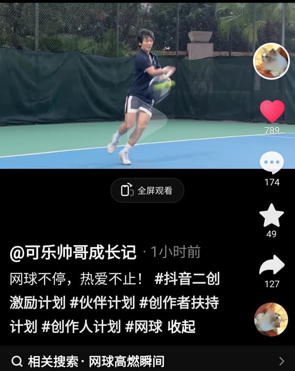 昨日、愛猫コーラのドゥインアカウントに登場した、テニス動画の話題から。