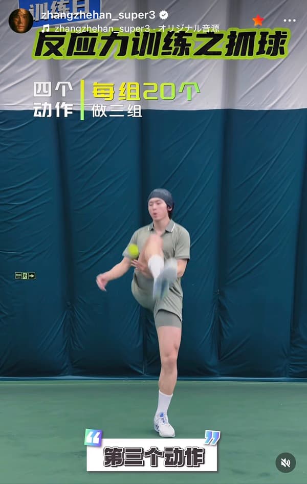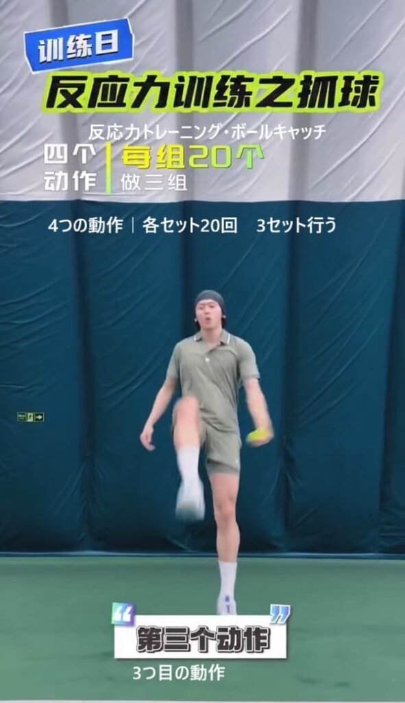チャンジャーハン公式インスタ3/17投稿「テニスの反応力トレーニング」VTR