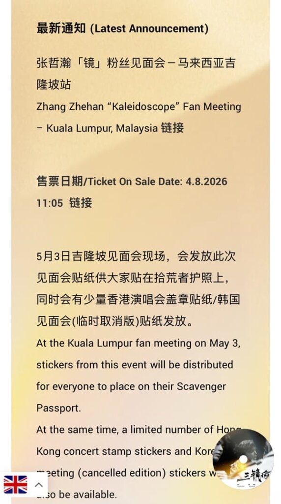 チャンジャーハン2026「鏡」ファンミーティング 5月3日 マレーシア クアラルンプール