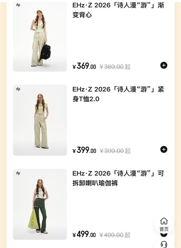 EHZ·Z 2026「詩人漫“遊”」取り外し可能フレアヨガパンツ¥499(約10,000円)