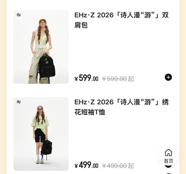 EHZ·Z 2026「詩人漫“遊”」バックパック¥599(約12,000円)