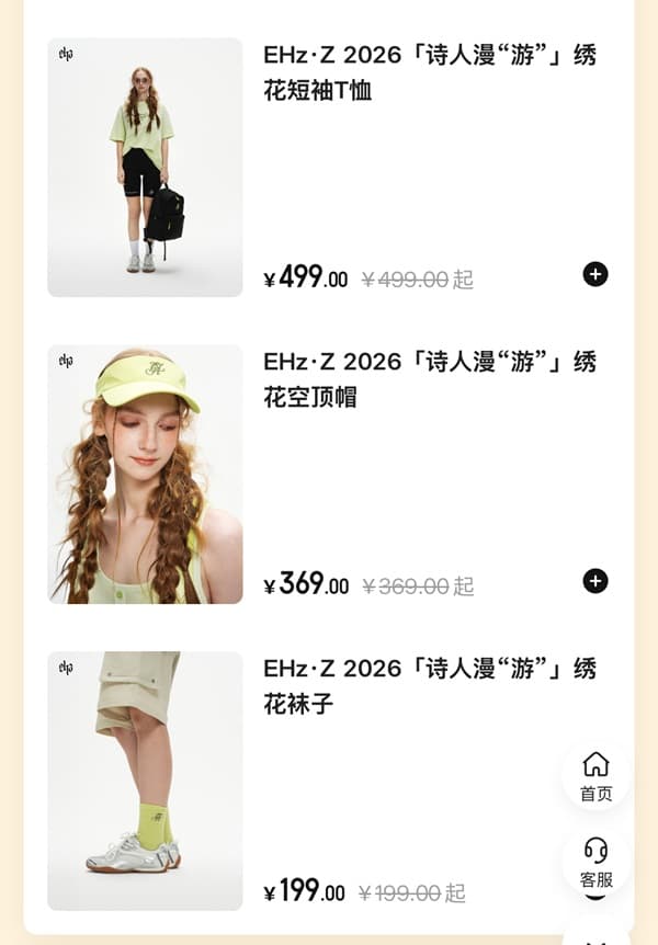 EHZ·Z 2026「詩人漫“遊”」フィットTシャツ2.0¥399(約8,000円)