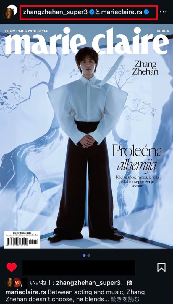 公式インスタ投稿①「マリクレールセルビア版、表紙にチャンジャーハン」