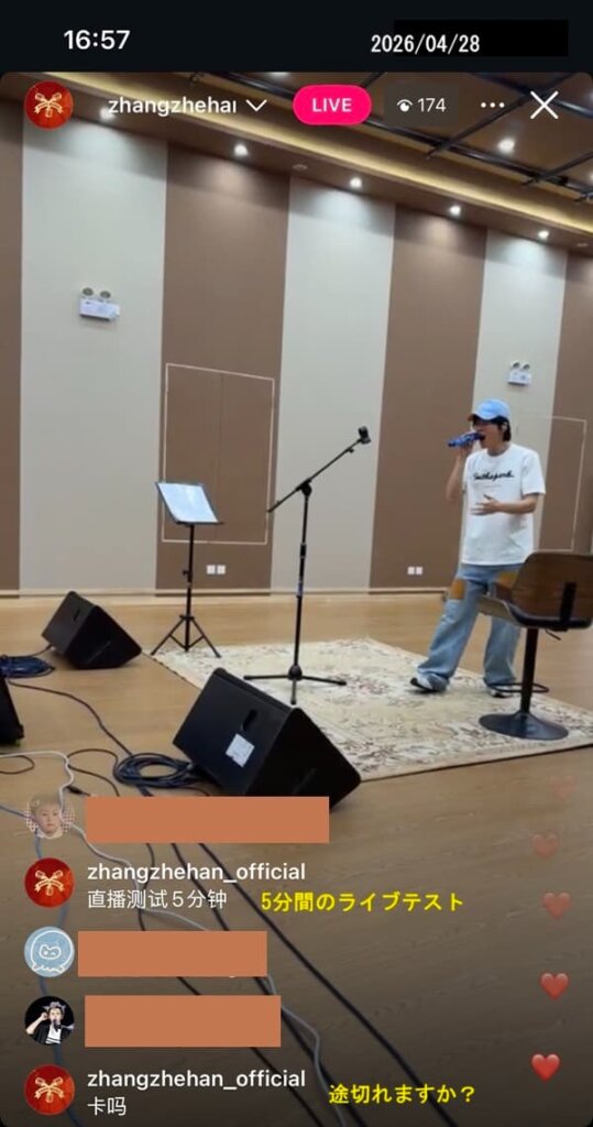 チャンジャーハン事務所の公式インスタ4/28「5分間のリハーサル生ライブ」