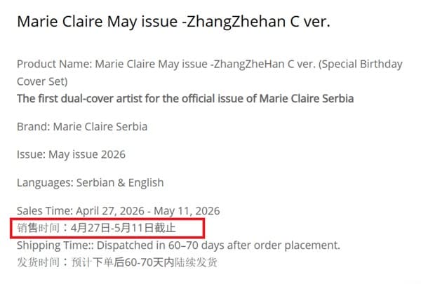 チャンジャーハン「マリクレール」セルビア版の表紙に登場!「バースデー特別号、4/27発売」