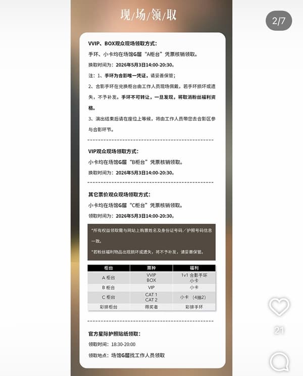 Aカウンター:VIP / BOX → 1v1合影チケット+小カード